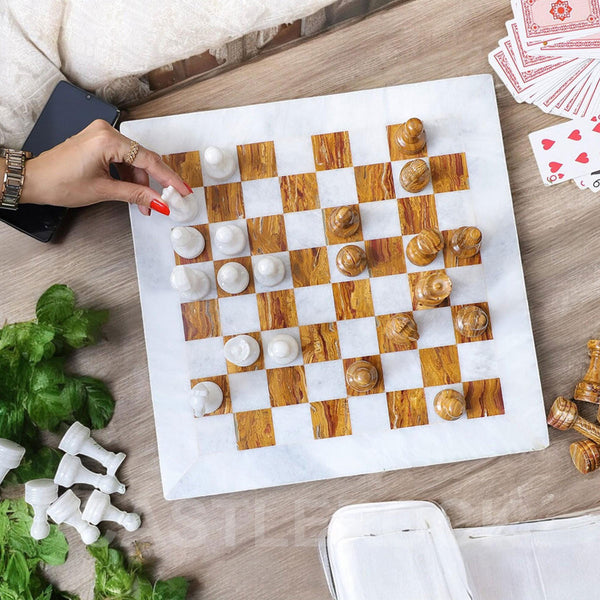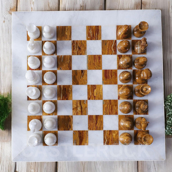 Material: This chess set is from high-quality marble onyx. Chess Board & Chess pieces are fully hand polished.